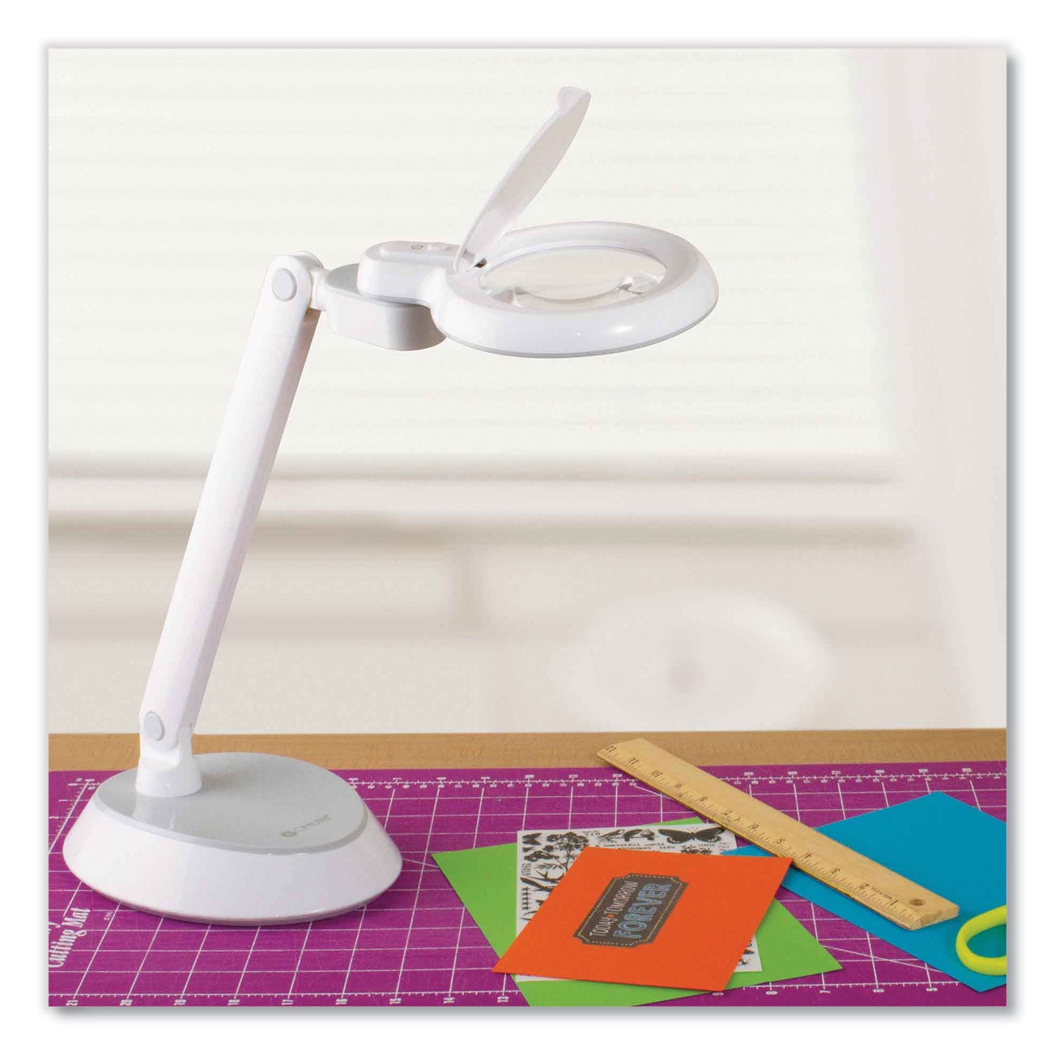 Space-Saving LED Magnifier Desk Lamp, 14" High, White, Sh...