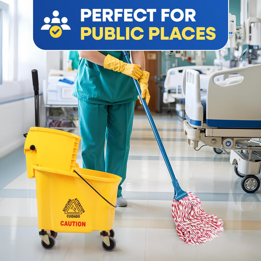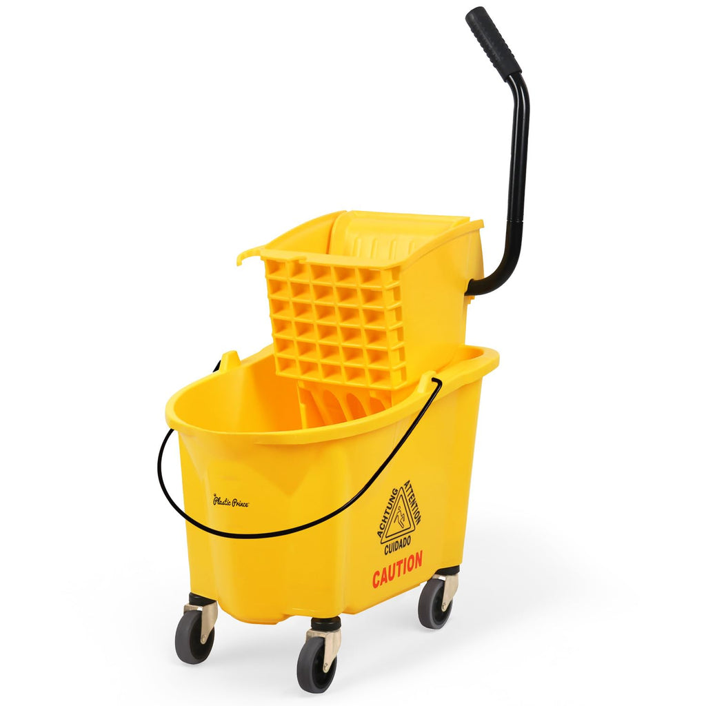 - Yellow Mop Bucket with Side Press Wringer: Featuring a splash guard and side press wringer, this yellow mop bucket minimizes spills while ensuring quick and thorough water extraction for cleaner, safer floors.