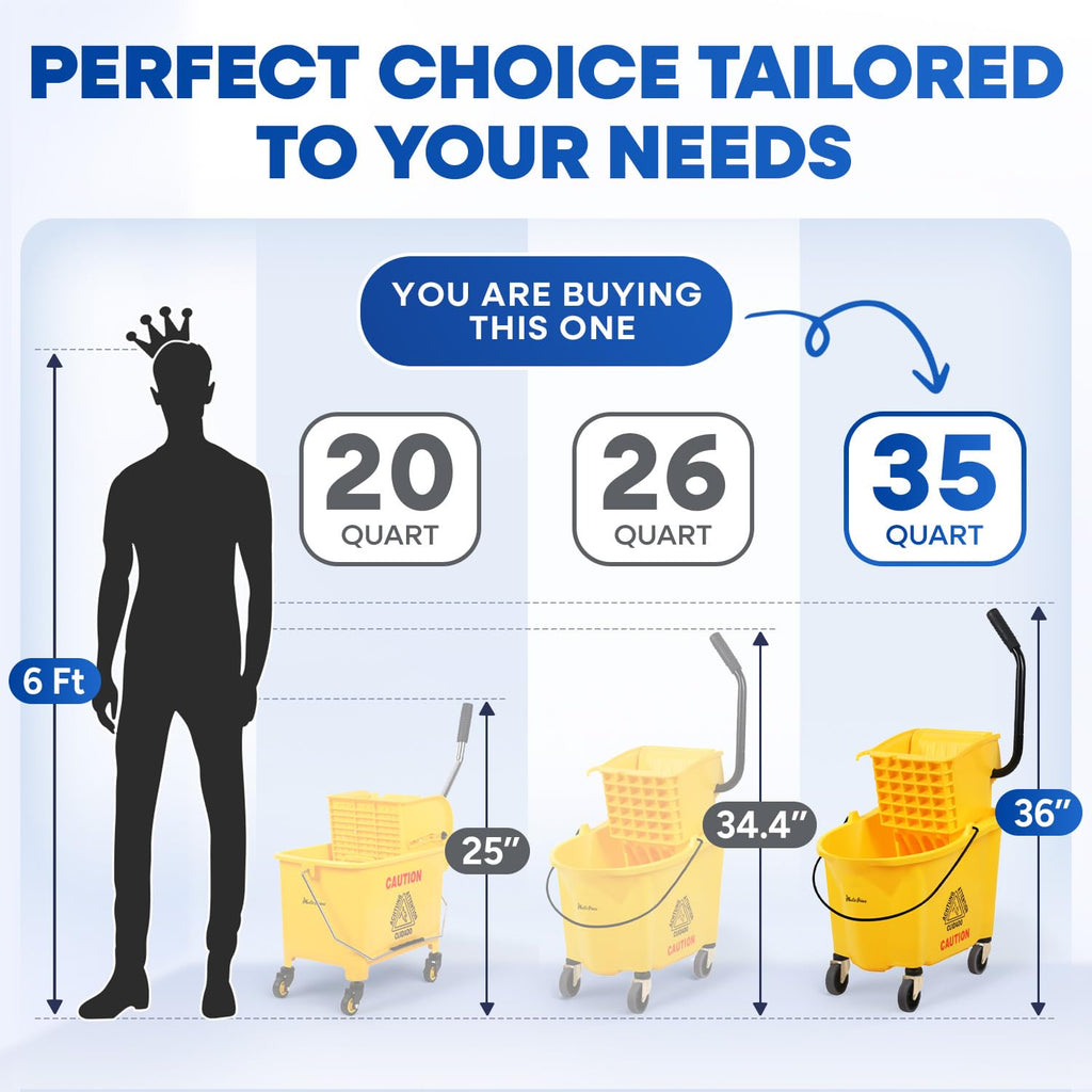 - Industrial Mop Bucket with Wringer: Designed for tough cleaning tasks, this 35-quart industrial mop bucket features a durable side press wringer, ideal for commercial and residential cleaning applications.