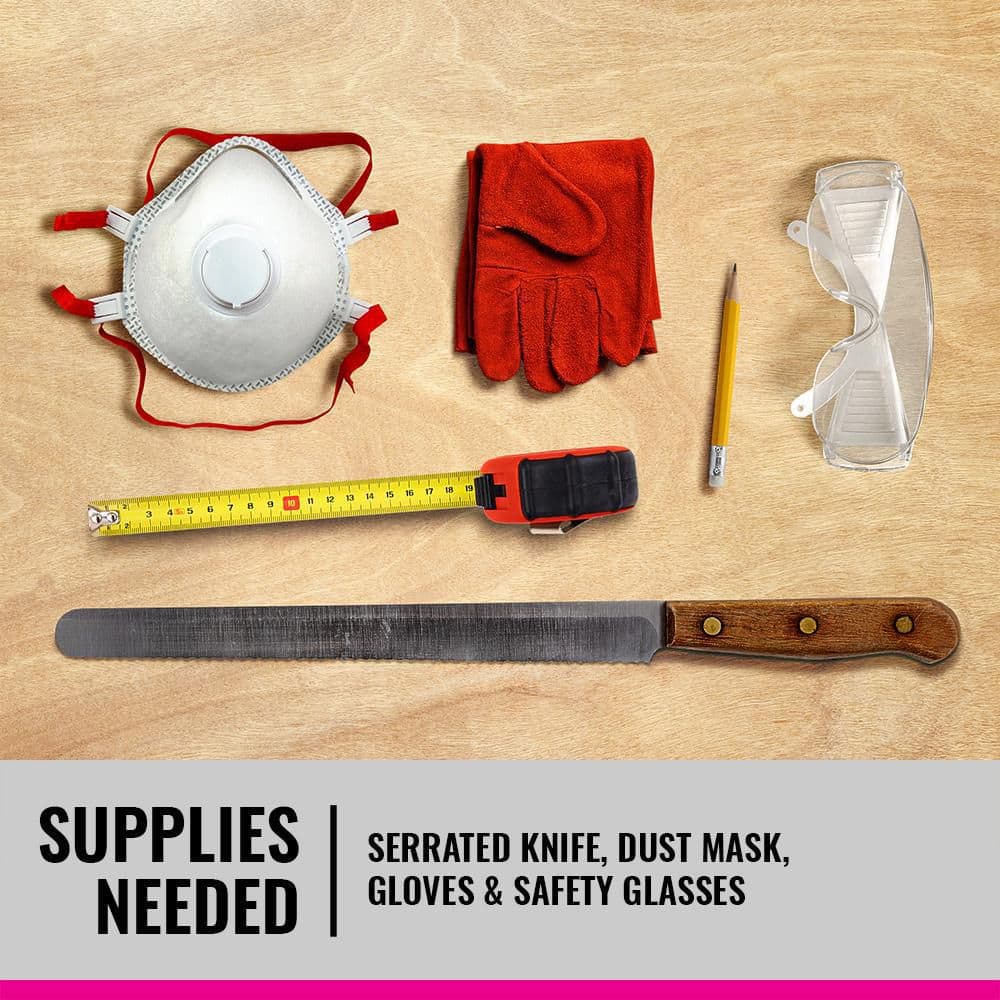 - Measure & Cut: Insulation is easy to cut with a serrated knife for custom fitting around electrical boxes, pipes, duct-work, wiring, or between non-standard studs and joists.