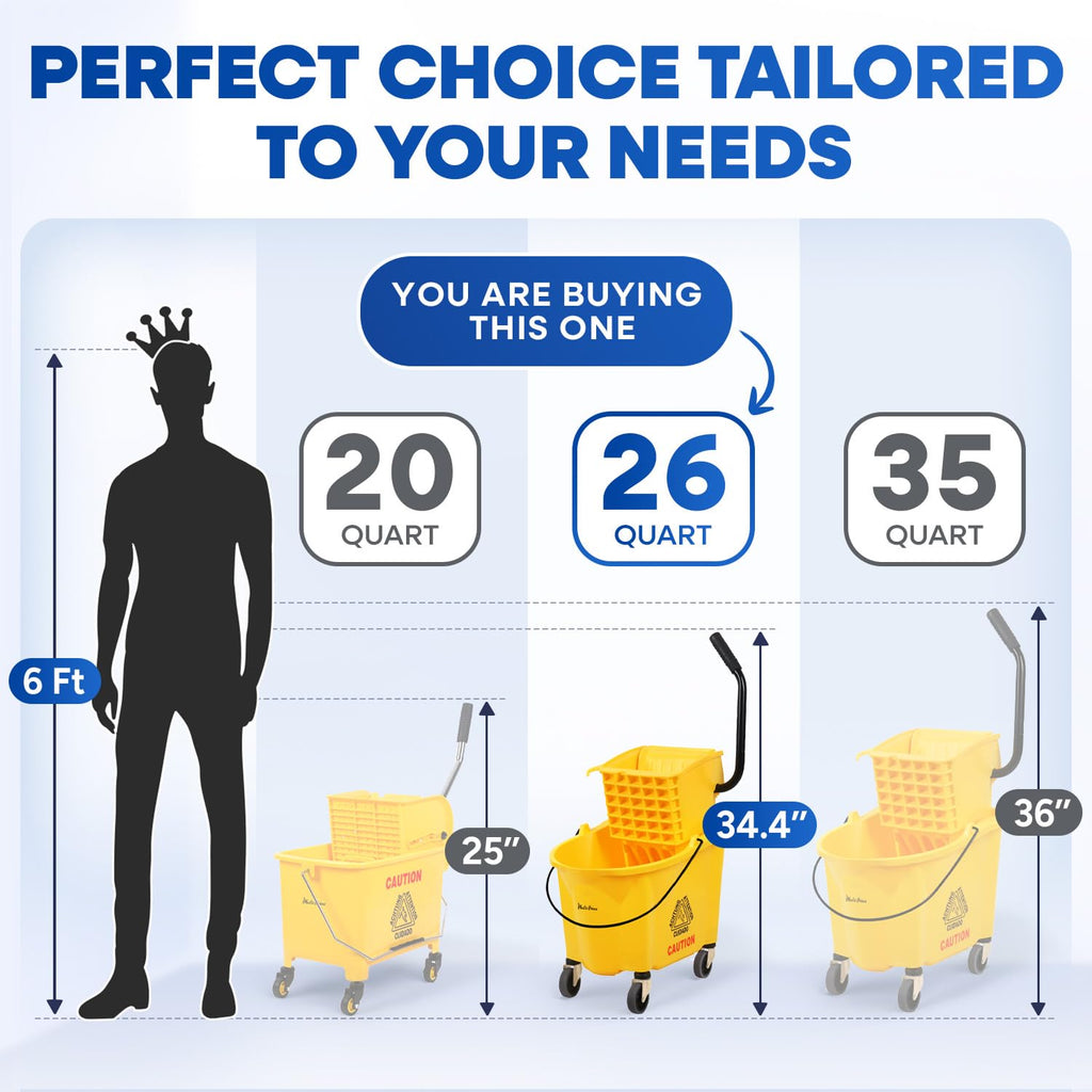 - Industrial Mop Bucket with Wringer: Designed for tough cleaning tasks, this 26-quart industrial mop bucket features a durable side press wringer, ideal for commercial and residential cleaning applications.