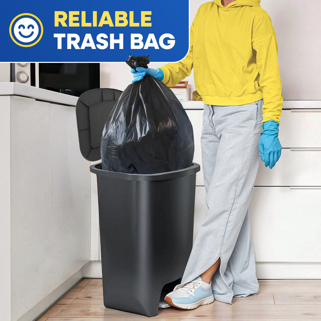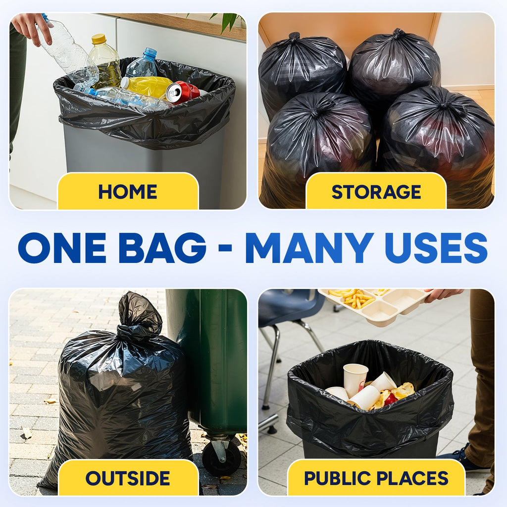 - Strong & Leak-Resistant Design: Featuring a star-sealed bottom, these 33-gallon trash bags evenly distribute weight to prevent leaks and spills, keeping trash cans clean and making disposal hassle-free. Ideal for businesses and households needing reliable liners.