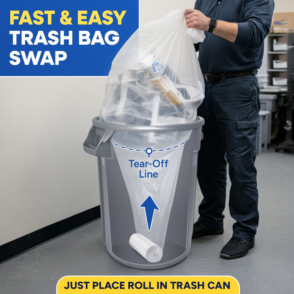 - Convenient Packaging of Clear Plastic Bags: Each case contains 250 pieces of trash can liners, clear plastic garbage bags, 40-45 gallon trash bags, providing a practical and manageable supply for businesses, warehouses, or facilities with moderate to high waste disposal needs.