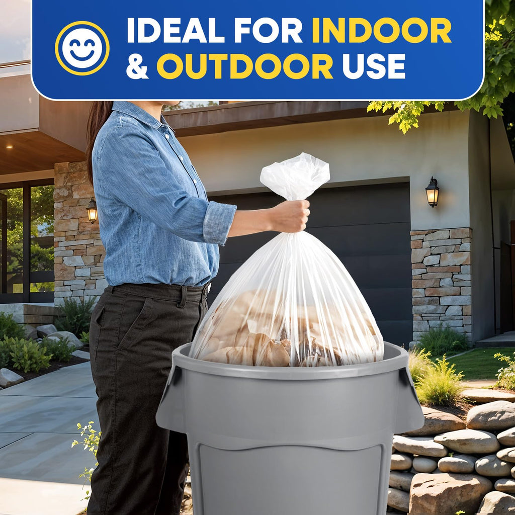 - Convenient Packaging of Clear Plastic Bags: Each case contains 150 pcs trash can liners, bulk trash bags, clear plastic garbage bags, providing a practical and manageable supply for businesses, warehouses, or facilities with moderate to high waste disposal needs.