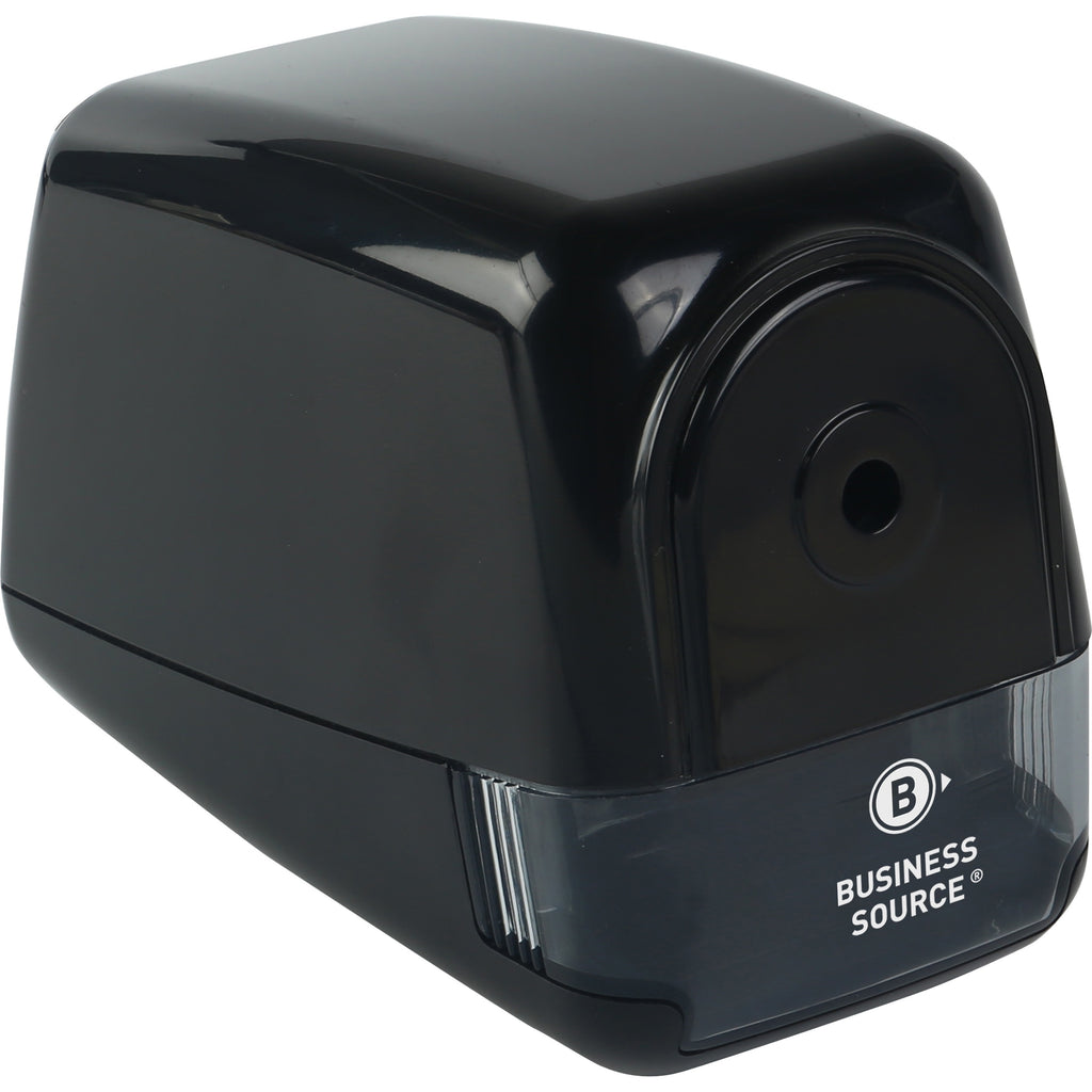 Electric pencil sharpener features a powerful yet quiet helical blade that's made with strong steel to quickly produce a sharp point. Large shavings cup allows continuous sharpening with fewer trips to empty your shavings. Automatic shutoff protects the sharpener from overheating to ensure consistent performance. Pencil sharpener with an included AC adapter utilizes a contemporary design for use in any modern room.