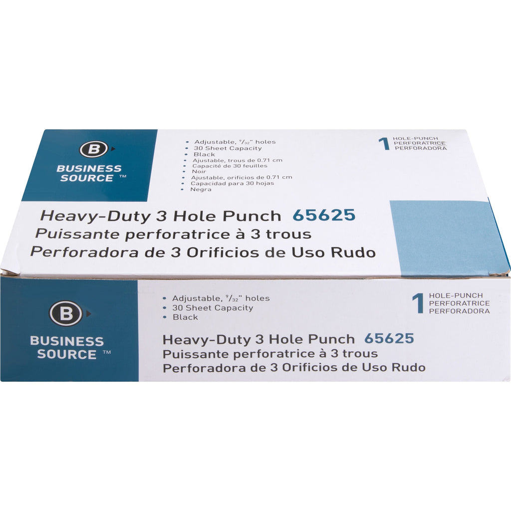 Heavy-duty punch drills through up to 30 sheets of 20 lb. paper at a time with two or three holes. Punch features three adjustable punch heads, centering guide with Imperial measurements, a removable chip tray and all-steel construction. Punch head measures 9/32".