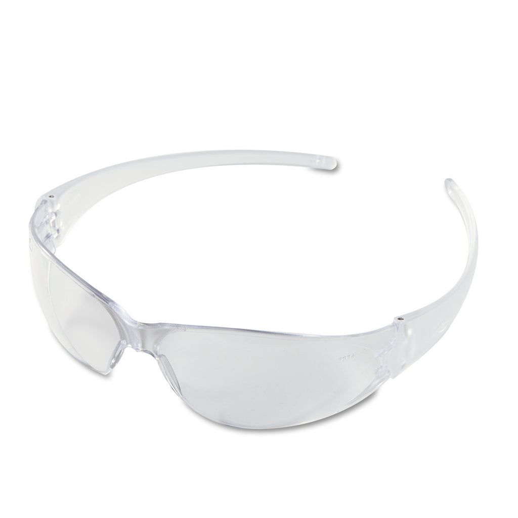 Lightweight, polycarbonate frame and nose piece. Design provides near total seal of eye orbit or maximum protection. Scratch-Resistant LensBlocks 99.9% of UV rays. Style: Wraparound; Frame Color: Clear; Frame Material: Polycarbonate; Lens Material: Polycarbonate.