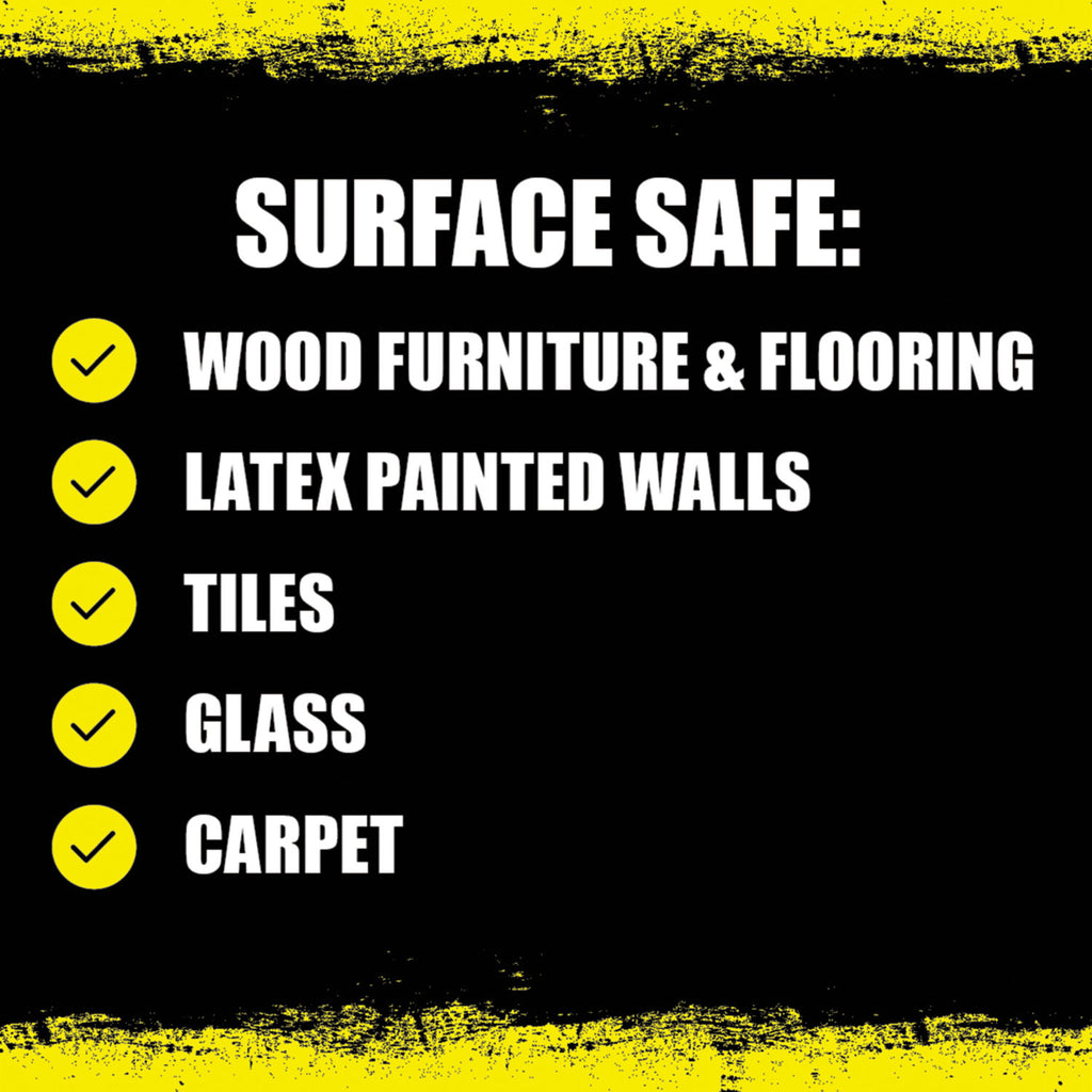 - Safe for use on latex painted walls, wallpaper, wood flooring and furniture, laminate flooring and countertops, carpet, ceramic tile, glass, stainless steel and granite.