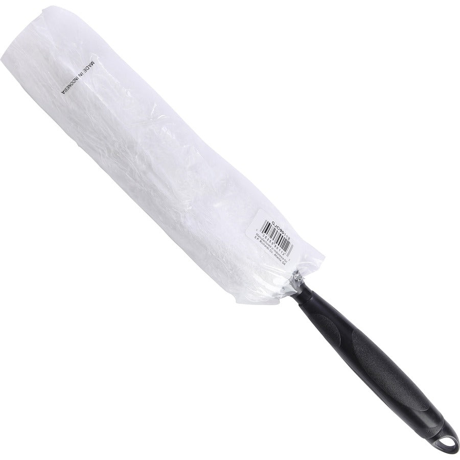 Microfiber duster features split strands that create a positive charge to grab and hold dust and dirt better than traditional dusters. Microfiber construction safely cleans hard surfaces without requiring additional chemicals. Duster accepts a standard threaded handle to conveniently reach hard-to-reach areas. Durable material is hand-washable to provide long-lasting use. Handle is approximately 8-5/8".