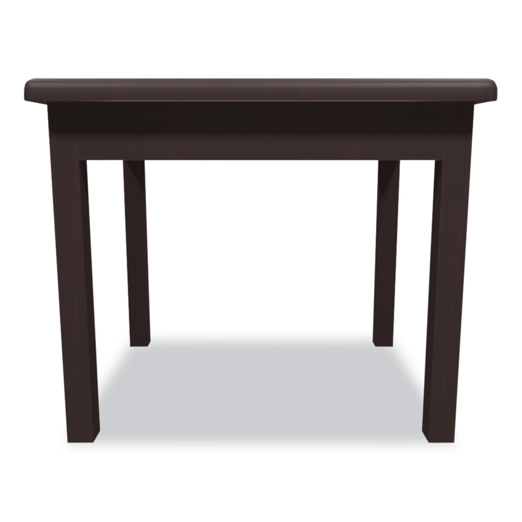 Sleek, contemporary styling that's durable. 2 thick honeycomb tops have a hollow core, making them extremely lightweight. Tops are abrasion- and stain-resistant thermal-fused laminate. Easy to assemble. End Table. Top Color: Mahogany; Color Family: Mahogany; Base Color: Mahogany; Top Shape: Rectangular.