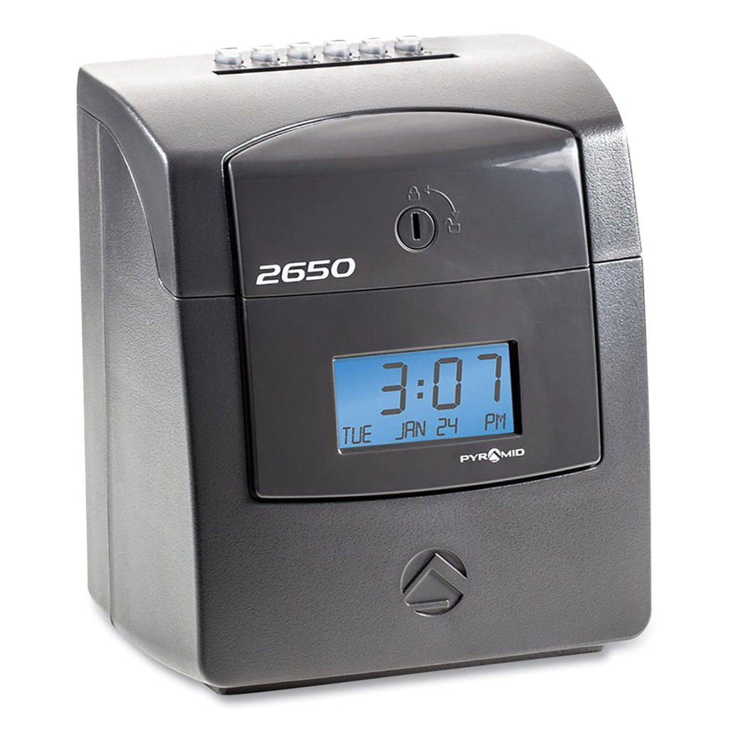 - Time card rack keeps cards in one convenient location.